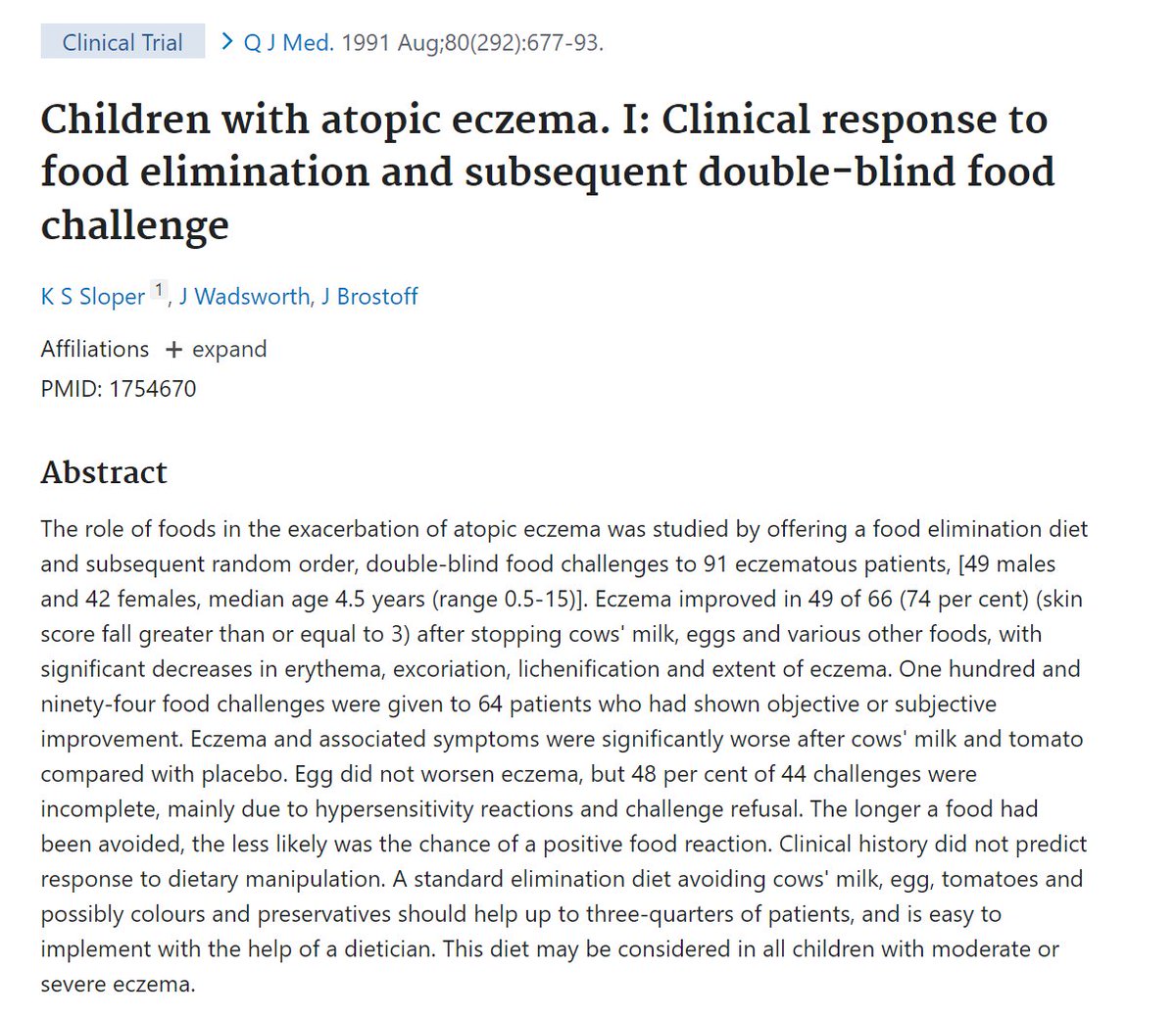 4/6 - A 1991 paper of childhood atopic eczema found an elimination diet avoiding cows' milk, egg, tomatoes and possibly colours/preservatives helps up to 3/4 of patients.