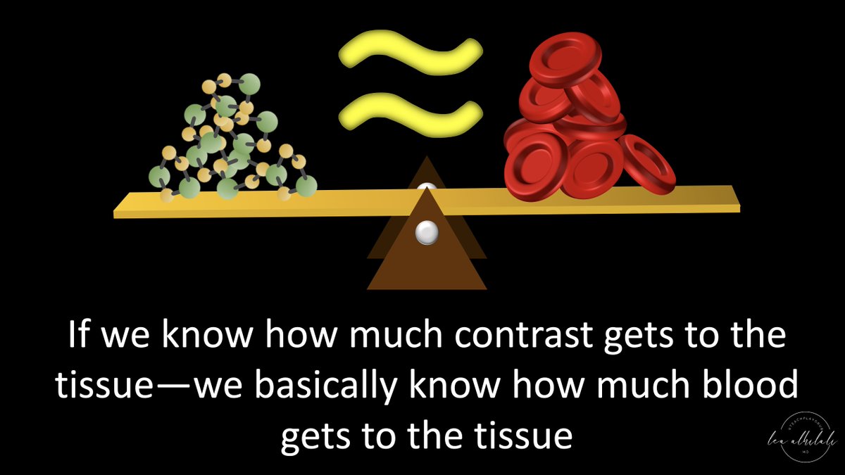 3/So if we can track how contrast gets to the tissue (by changes in CT density or MR signal), then we can approximate how BLOOD is getting to the tissue.