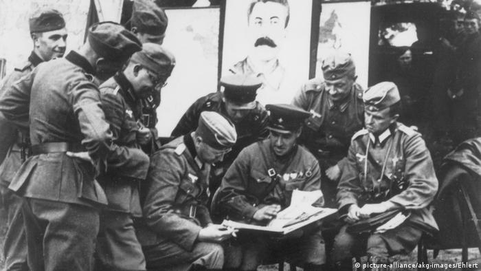 OTD 1939 Moscow, following its joint war plans with the Nazis, has joined German Wehrmacht and SS and attacked Poland from the East. Joint military operations climaxed in a joint military victory parade in Brest. My grandfather's brother was a Polish soldier, killed in this war.