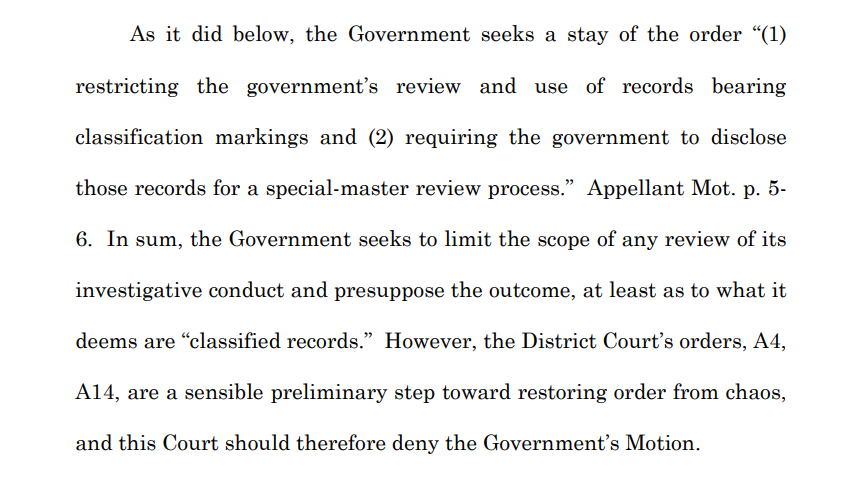 A nice way of saying DOJ is intentionally misleading the court as to the very plain language in Cannon's order and insisting a halt to criminal investigation impedes the last-ditch "national security" assessment announced the day Cannon indicated Trump's lawsuit could proceed