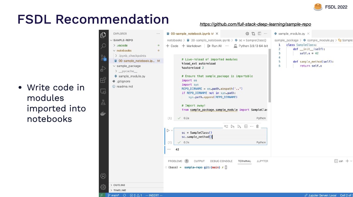 For example, we think the debate between modules and notebooks is that you should write code in modules, and import them into notebooks 😃