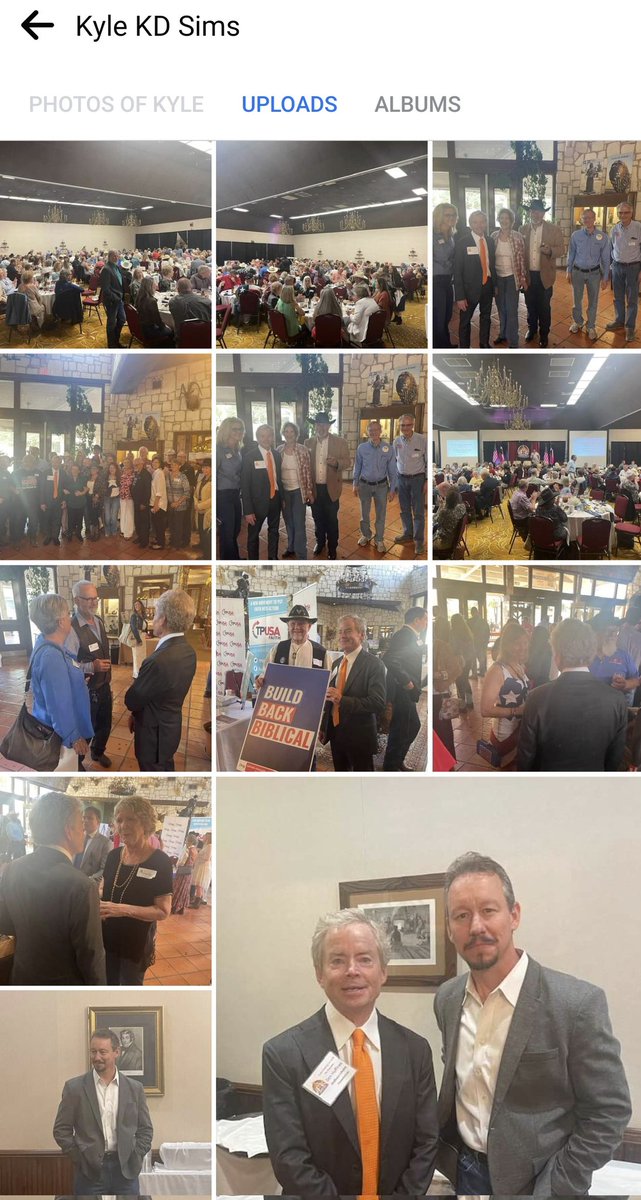 Sims is a prolific activist, pictured with several high profile people like the Paxtons and Mike Lindell. He is active in a John Birch Society group on Facebook, and recently seen at events with Protect Texas Kids and True Texas Project, and spoke at a Frisco school board meeting
