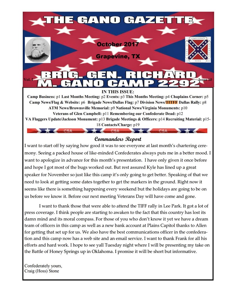 My mistake led me to learn that there is a fairly active Sons of Confederate Veterans group that meets regularly in the town next to my hometown, has rallied with TITFF in Dallas outside of the building modeled after Robert E Lee's home, and is headed by a different Kyle Sims.