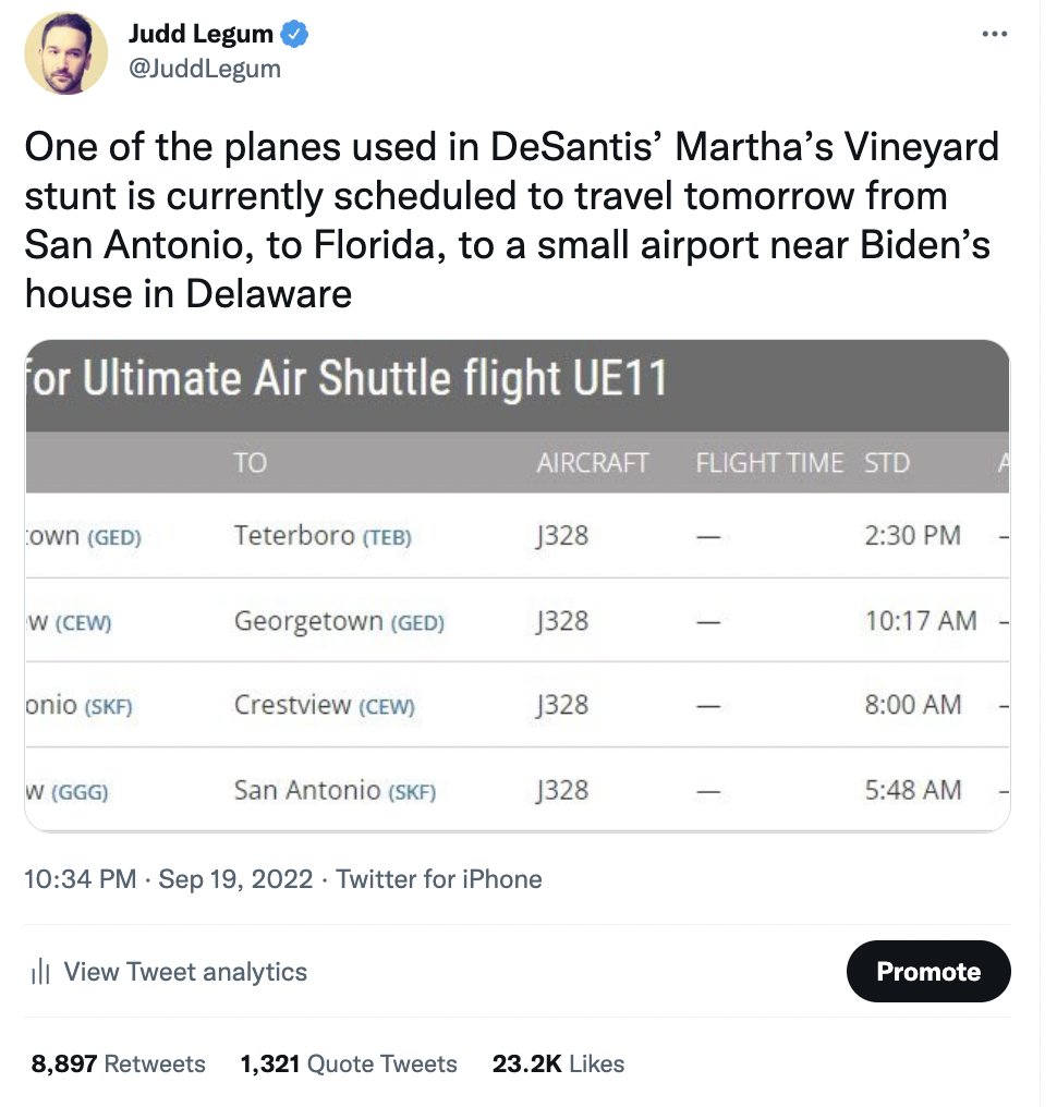 1. DeSantis aide @ChristinaPushaw said I was "punked," along with other members of the media, by reporting that DeSantis had scheduled a flight of migrants from Texas to Florida to Delaware