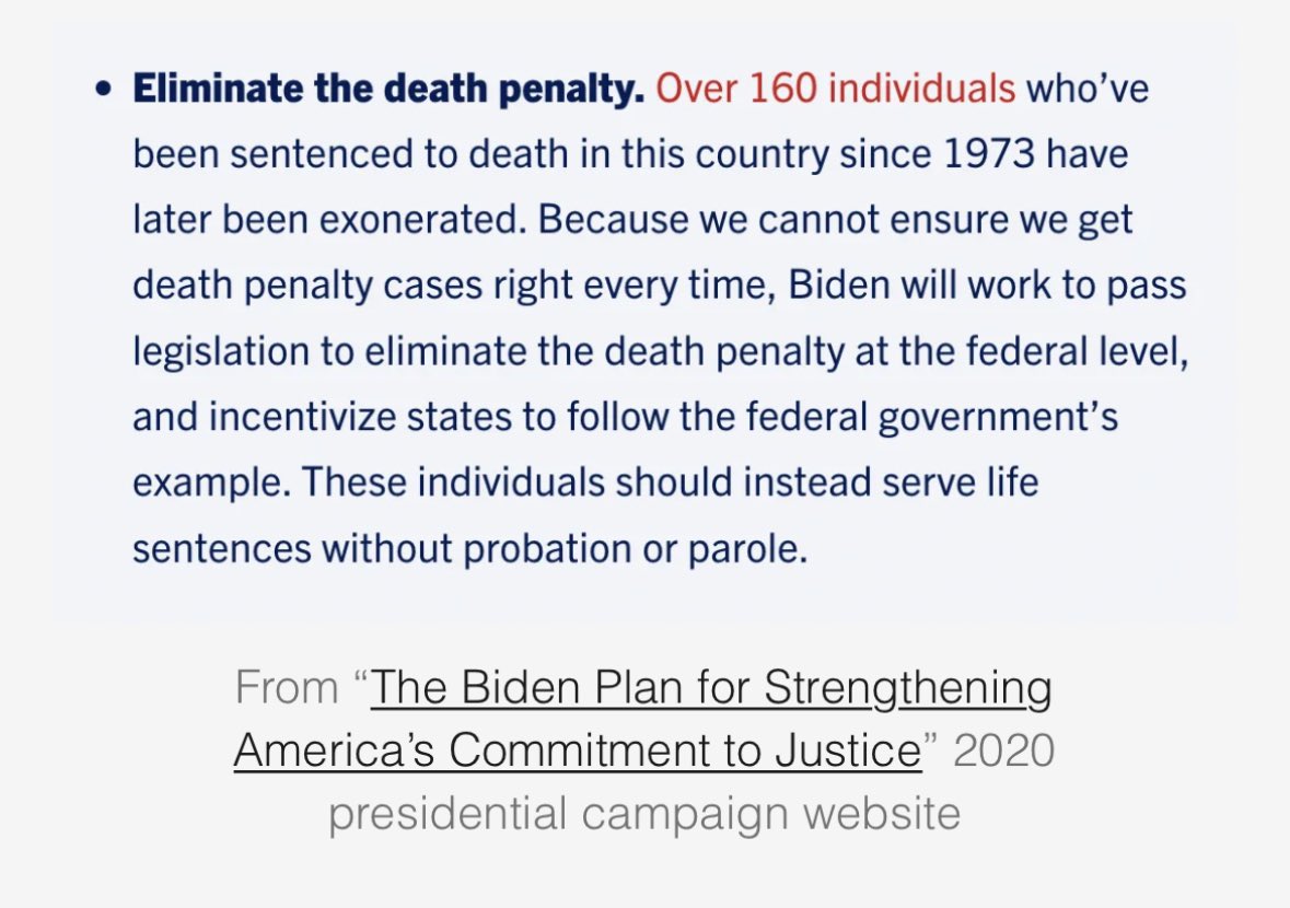 During his campaign, however, Biden pledged to “eliminate the death penalty,” holding out that such individuals should instead serve life without the possibility of parole. lawdork.com/p/the-biden-ad…