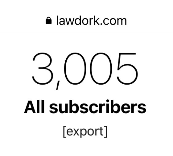 Three months ago tonight, I announced that I was going to be starting a newsletter. Just hours shy of the three-month mark from my first subscriber, I passed 3,000 subscribers to @lawdorknews earlier today. lawdork.com