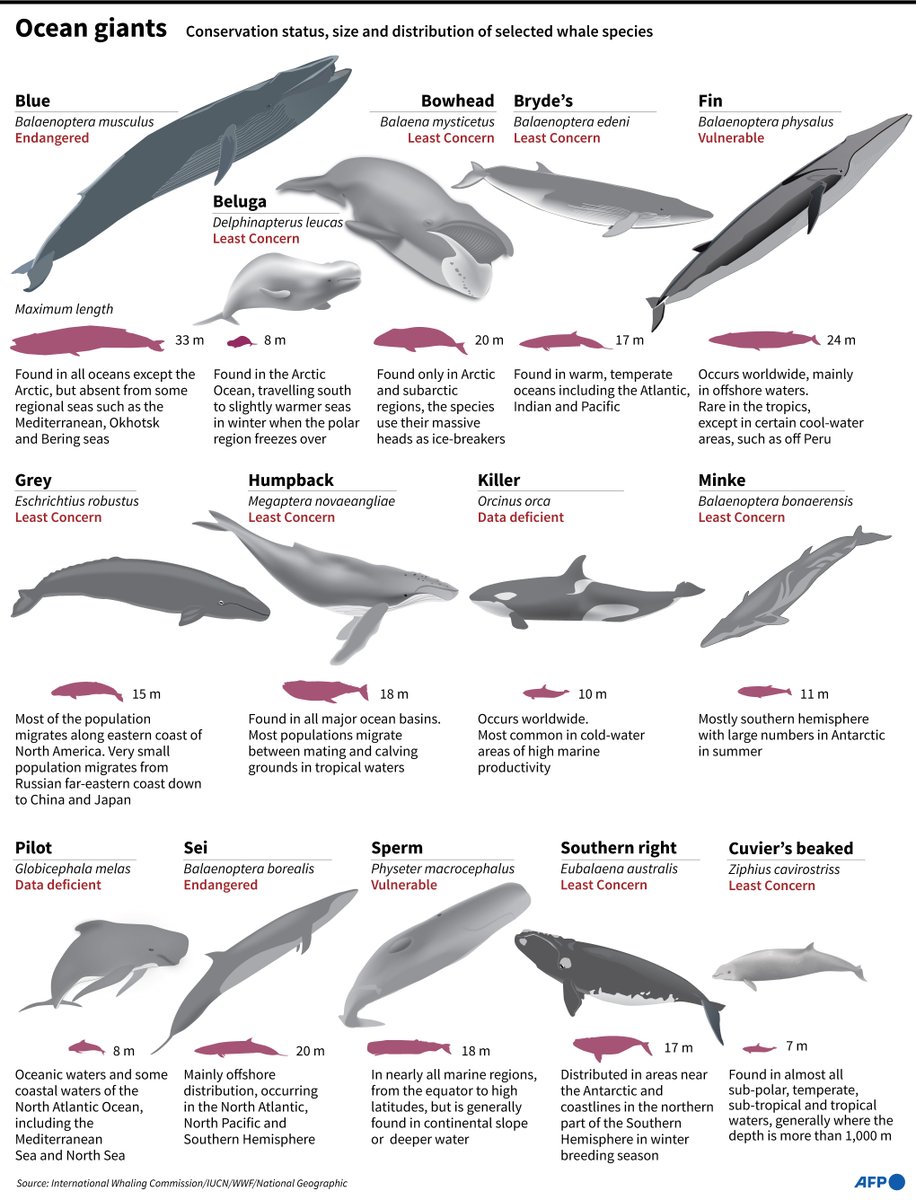 #AFPGraphics on the conservation status, size and distribution of selected whale species
