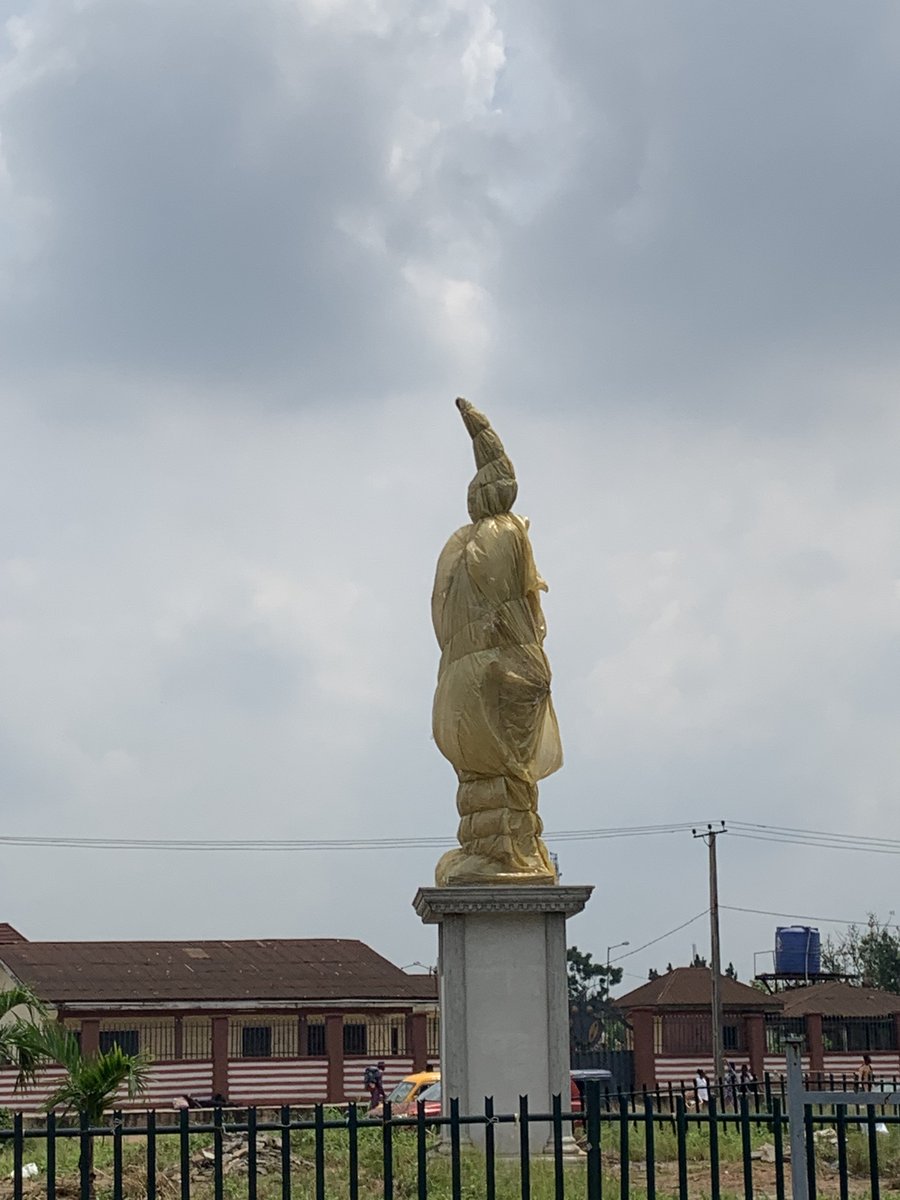 @TheAtlantic This is very possibly the largest brasswork ever cast in Benin CIty, about twice human-size. It was done for the 5th anniversary of the ascension of the present Oba. The unveiling was scheduled for the day after I left the city, so I captured it still wrapped in plastic