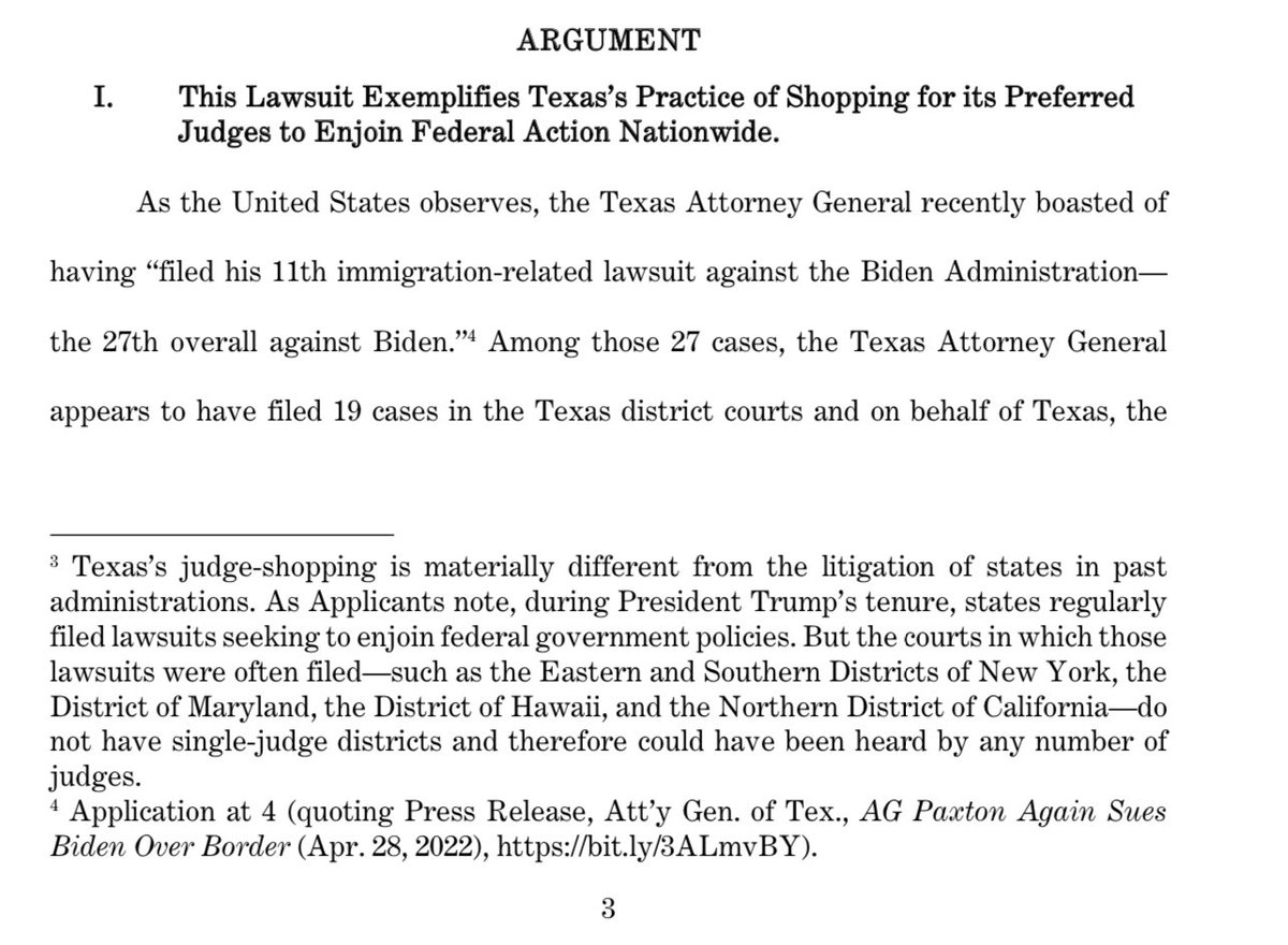 Just filed at #SCOTUS: Our new amicus brief on why Texas's transparent judge shopping ought to way against its effort to block the Biden Administration's immigration enforcement priorities — including data on how what Texas is doing is *much* worse than blue states suing Trump: