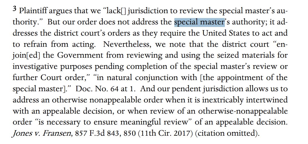 Appeals panel also rejected Trump's claim that the appointment of a special master was unappealable, since it was intertwined with the obviously appealable decision to enjoin the criminal investigation.
