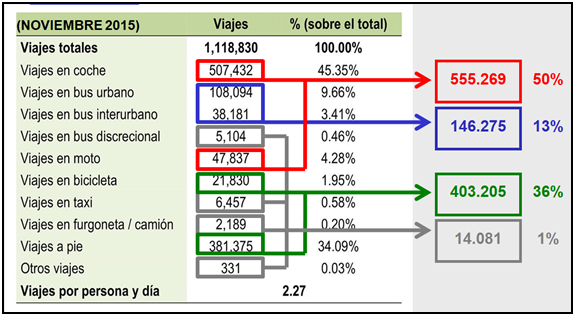Estos son los datos de la última encuesta de movilidad realizada en el área de Granada para un día laborable (2015).