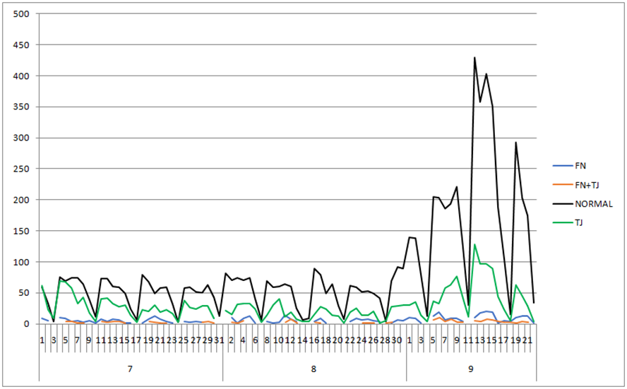 De nuevo aparece un cambio de tendencia respecto a los registros de 2019 y que parecen ser superados durante el mes de septiembre.