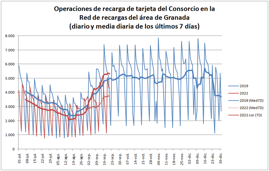 Este incremento también se detecta en las operaciones de recarga, si tenemos en cuenta el efecto corrector que en estas genera el hecho la reducción de las tarifas con tarjeta un 30% y, por tanto, de las necesidades de realizar dicha recarga.