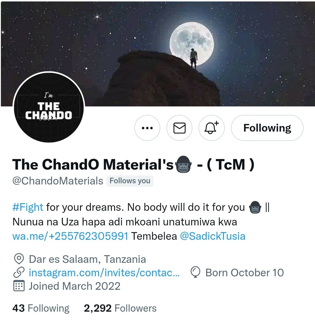 The list above and response are not exhaustive unaweza kuongeza au kupunguza chochote, ila ukifuatilia hata haya machahe yatakusaidia siku yoyote huko mbeleni. Sisi wengine tunaendelea na @ChandoMaterials