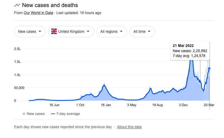 The US is still seeing 30-40k Covid cases/day and averaging 1200 deaths a day. This makes no sense after 2 years of vaccination and very high infection rates. Germany has 200k & SKorea 380k cases/day.