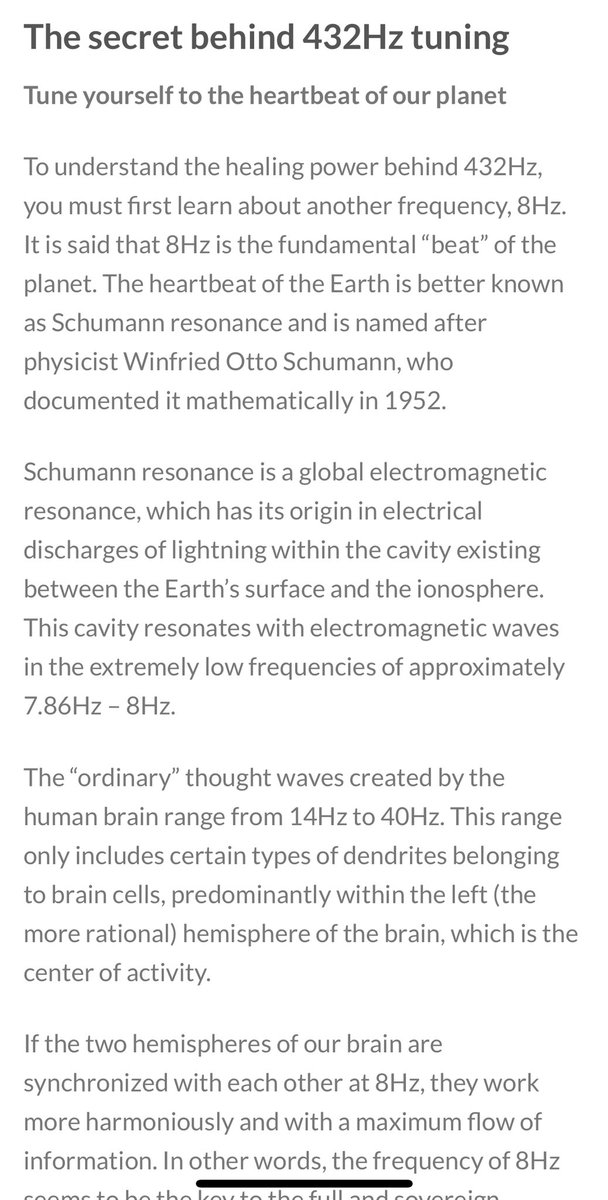 432Hz is the harmonic intonation of nature, and is closely related to 8Hz, which is said to be the fundamental “beat” of Earth, known as the Schumann resonance. attunedvibrations.com/432hz-healing/