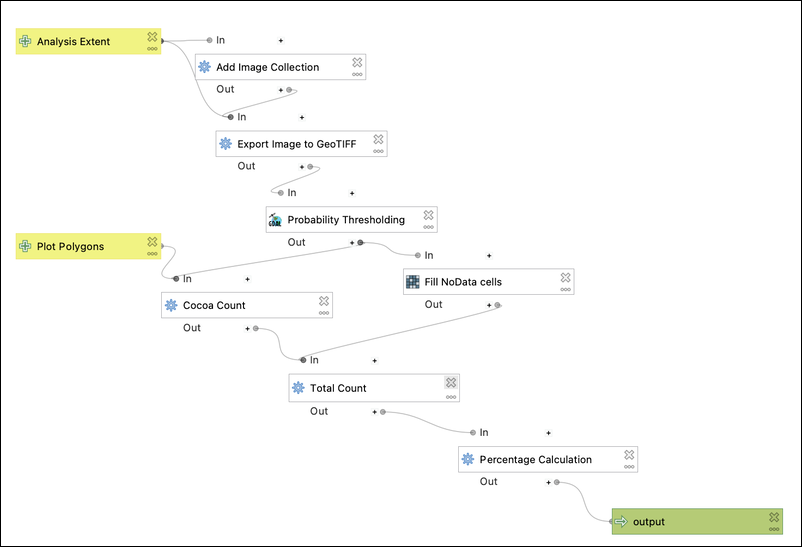 Tutorial 2: Building a Workflow: A tutorial on using the QGIS Model Designer to build a workflow to download a data layer of Cocoa Probability from the Earth Engine Data Catalog and calculate the percentage of cocoa plantation in a plot boundary (3/n) gee-community.github.io/qgis-earthengi…