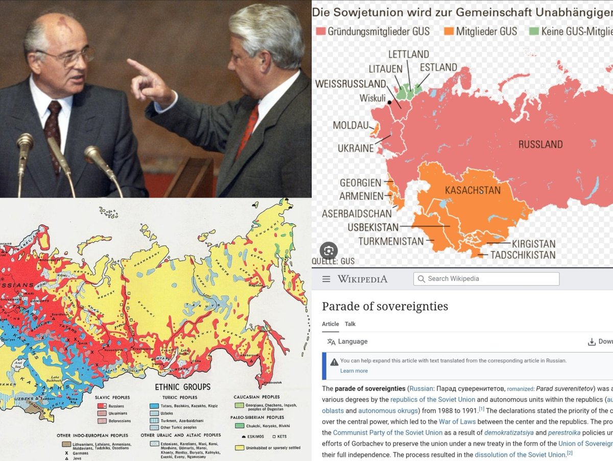 Vor 34 Jahren zerfiel die Sowjetunion. Bis heute blieb unbeachtet, dass der Prozess R. auch nach innen vor eine Zerreissprobe stellte: 14 der 16 Autonomen Teilrepubliken reichten damals 'Souveränitätsbekundungen' ein.