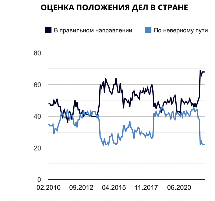 Индикатор «положение дел в стране» самый позитивный сейчас в России за всю историю наблюдений Левады.