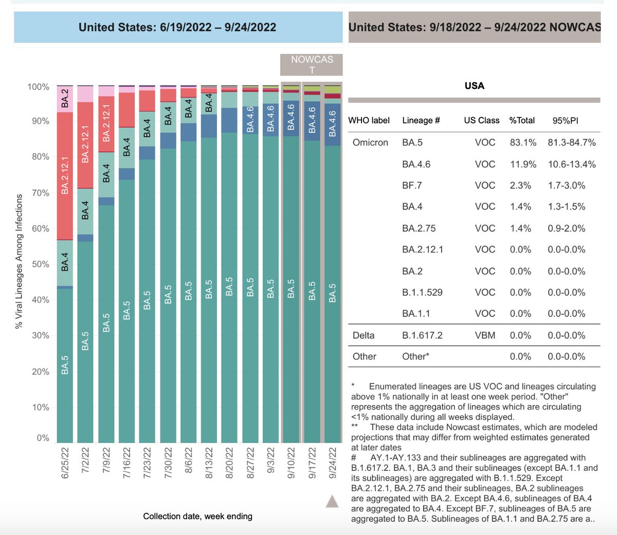 The proportion of BA.5 cases is declining, as new variants are out-competing, some of which have already been shown to have more immune escape such as BA.2.75.2 and BQ.1.1 covid.cdc.gov/covid-data-tra…