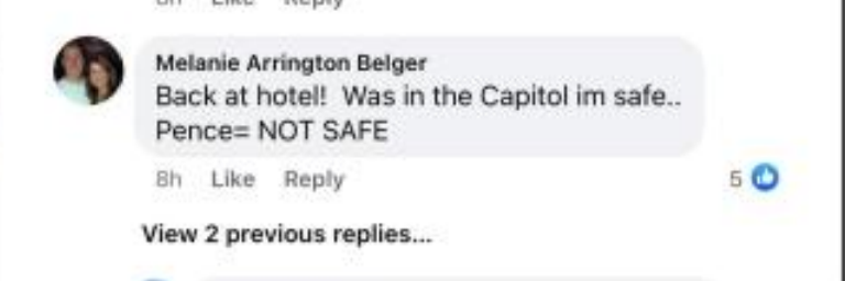 "Back at hotel! Was in the Capitol im safe.. Pence=NOT SAFE.”