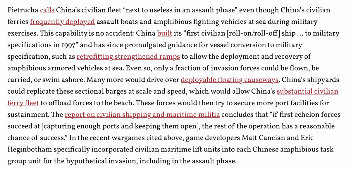 One of the places where Pietrucha was furthest off the mark IMO was in dismissing China's civilian shipping as near-useless in an assault, seemingly missing the fairly well-known fact that much of that shipping is now required to be built to specific national defense standards.