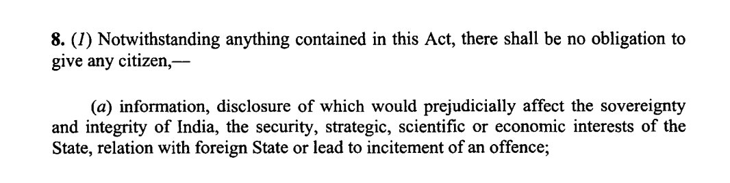 Here's what Section 8(1)(a) of the RTI Act 2005 says: