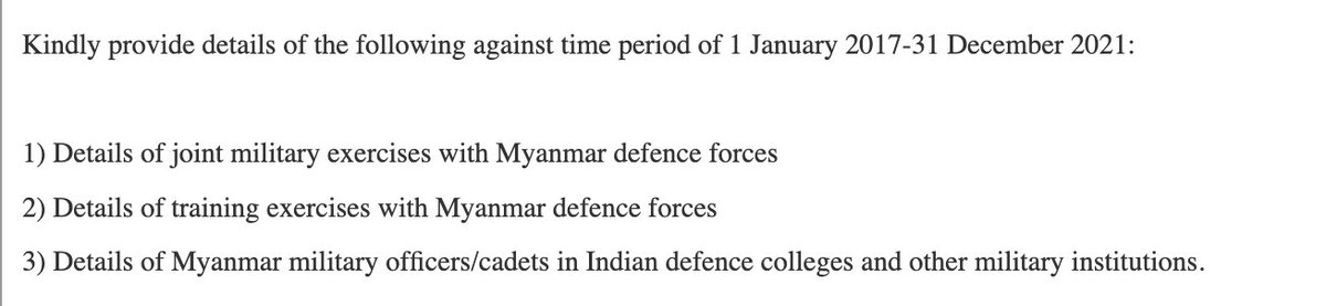 Here, it might be prudent to mention that in January 2022, I had filed an RTI asking for details on India-Myanmar military training cooperation. I have received no reply so far, despite submitting an appeal. 11/n