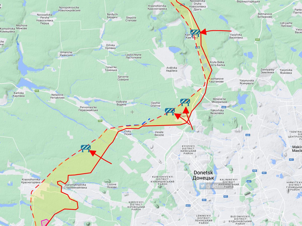 The area of the real pro-RU bottom feeders. Ukrainian super bats stopped RU advances in the area of Kam'yanka, Avdiivka, Opytne, Nevel's'ke and Novomykhailivka.