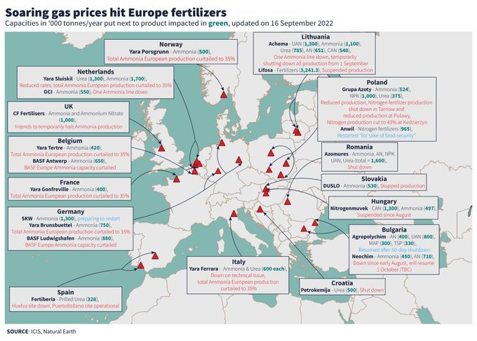 Fertilizer plan shutdowns in Europe 🇪🇺... $ung $cf $ipi $cvr $ntr $most $ande