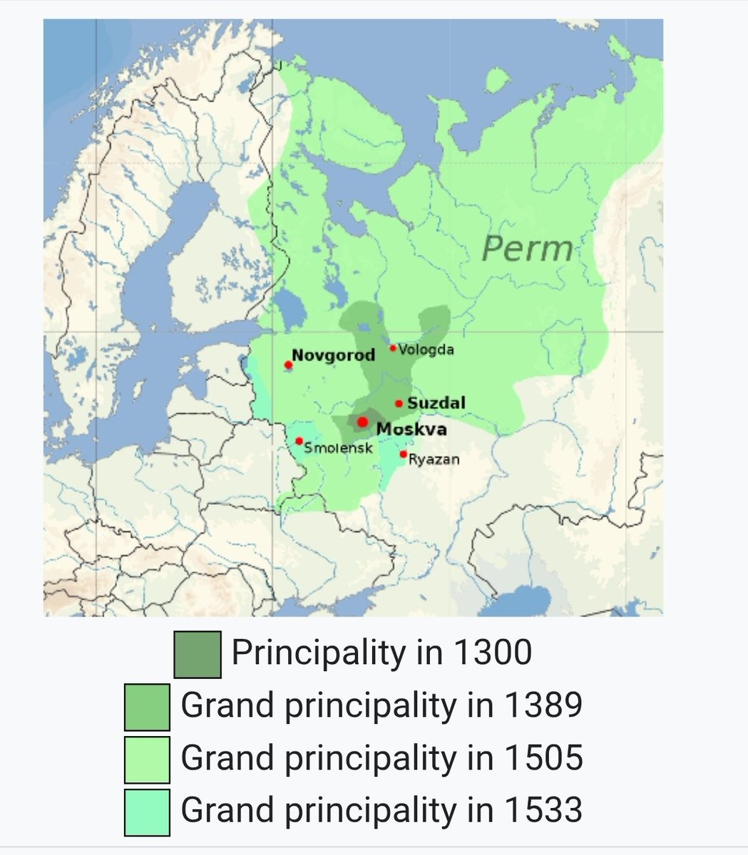♦️Was wir heute als 'Russland' titulieren, entstand im Kern im 15.-18. Jh. durch die - teilweise mit viel Blut & lokalen Genoziden verbundene - Kolonisierung des Ostraumes, welchen die Goldene Horde nach ihrem Zerfall 'hinterlassen' hatte.