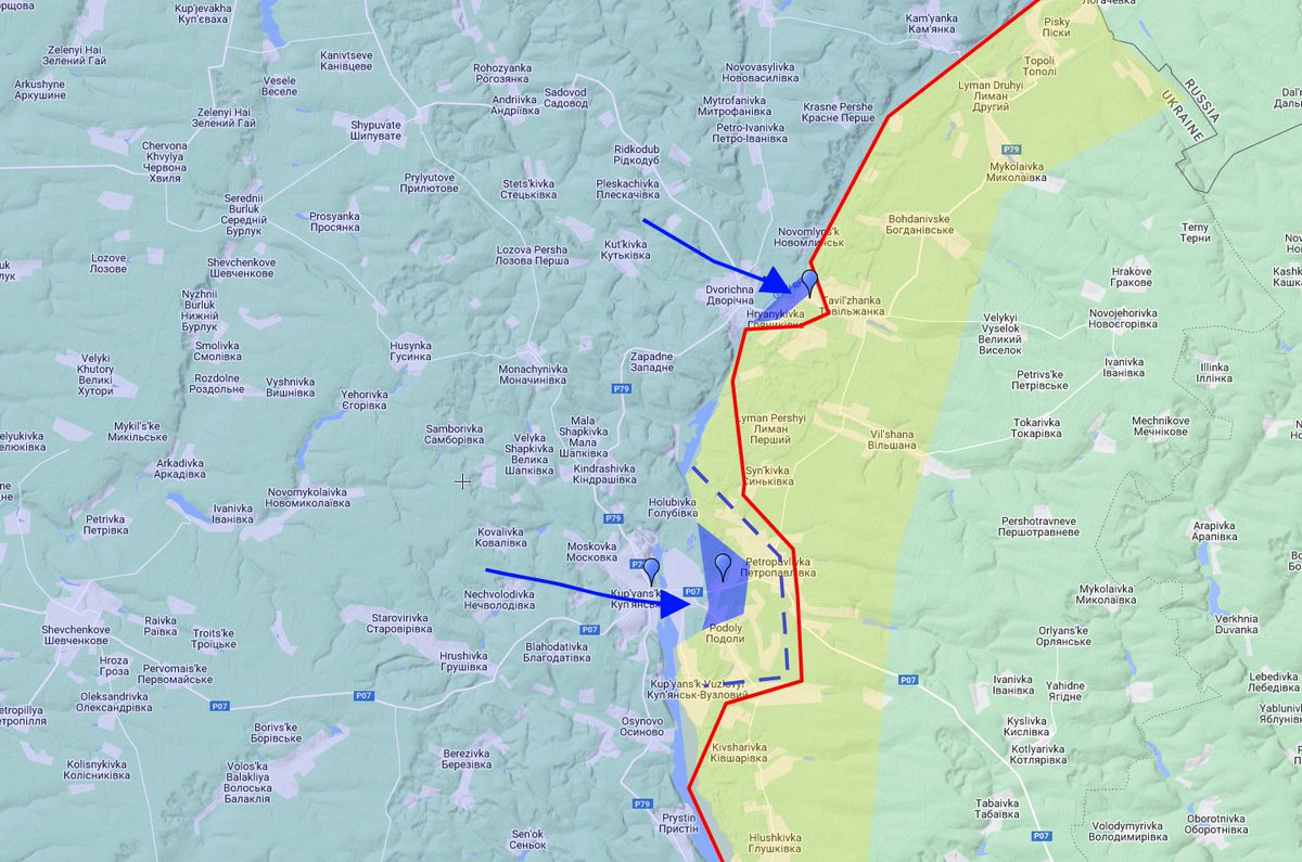 Based on shelling locations, I believe the AFU has established 2 bridgeheads in the Kup'yans'k area.