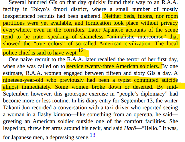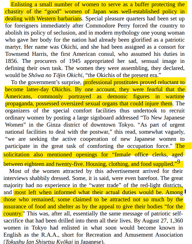 The govt. began setting up secret brothels for US servicemen which they hoped would satisfy the sexual impulses of occupying soldiers thus protecting the general public from rape and exploitation.