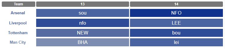 โ Gameweeks 13/14: By having one eye on the blanks for Man City and Arsenal in GW12, and if limiting Liverpool investment with their tricky run, managers using a GW9 Wildcard may find it hard to capitalise on some excellent fixtures for the trusted performers in GW's 13 and 14.