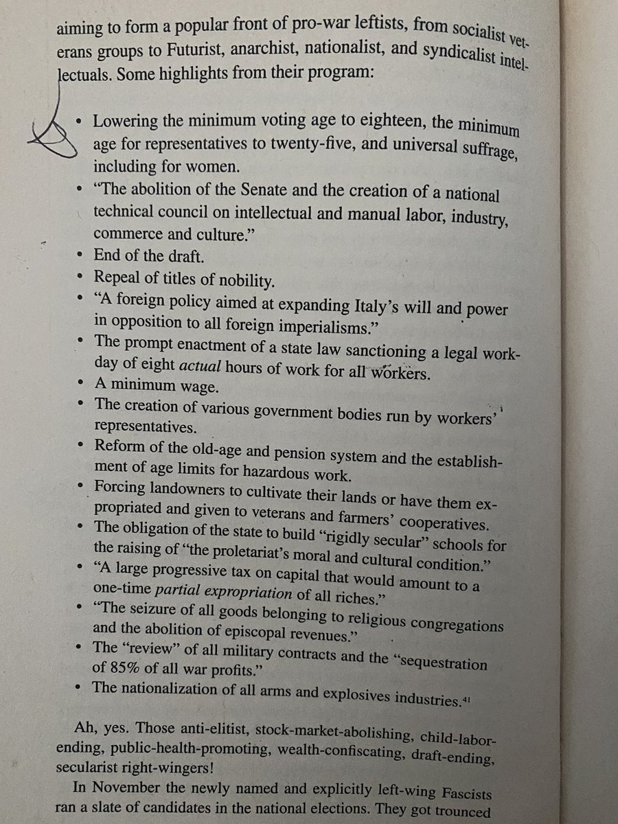 P.S. I’m curious which parts of this fascist platform from 1919 modern progressives would take issue with?