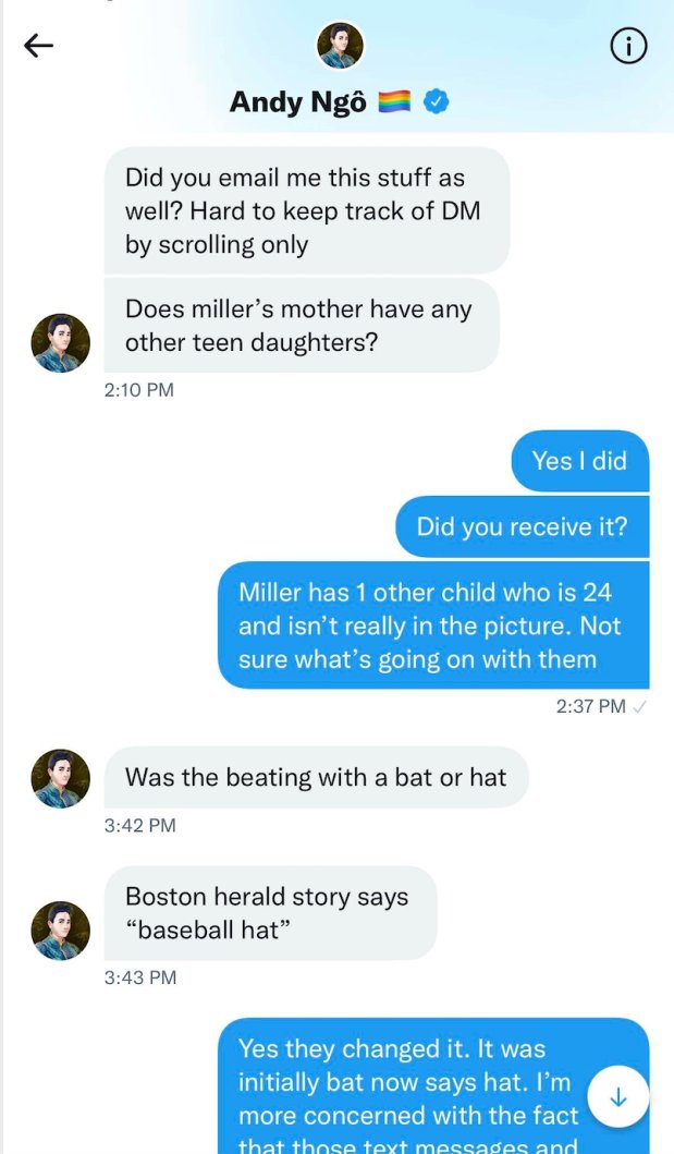 Last year I extensively covered the Mikayla Miller hoax, after Monica Cannon-Grant accused 5 white teens of lynching the black Hopkinton teen. I saw Andy tweet about it so I got in contact with him, since it was right up his alley. He immediately took an interest and followed me: