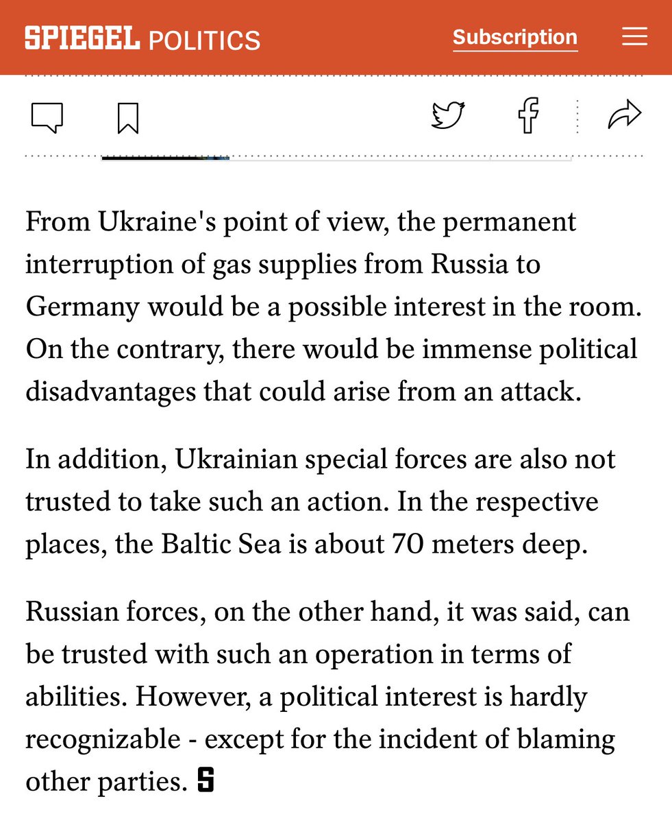 “Ukrainian special forces are not trusted to take such an action…the Baltic Sea is 70 meters deep. Russian forces can be trusted with such an operation in terms of abilities. However, a political interest is hardly recognizable, except for the incident of blaming other parties”