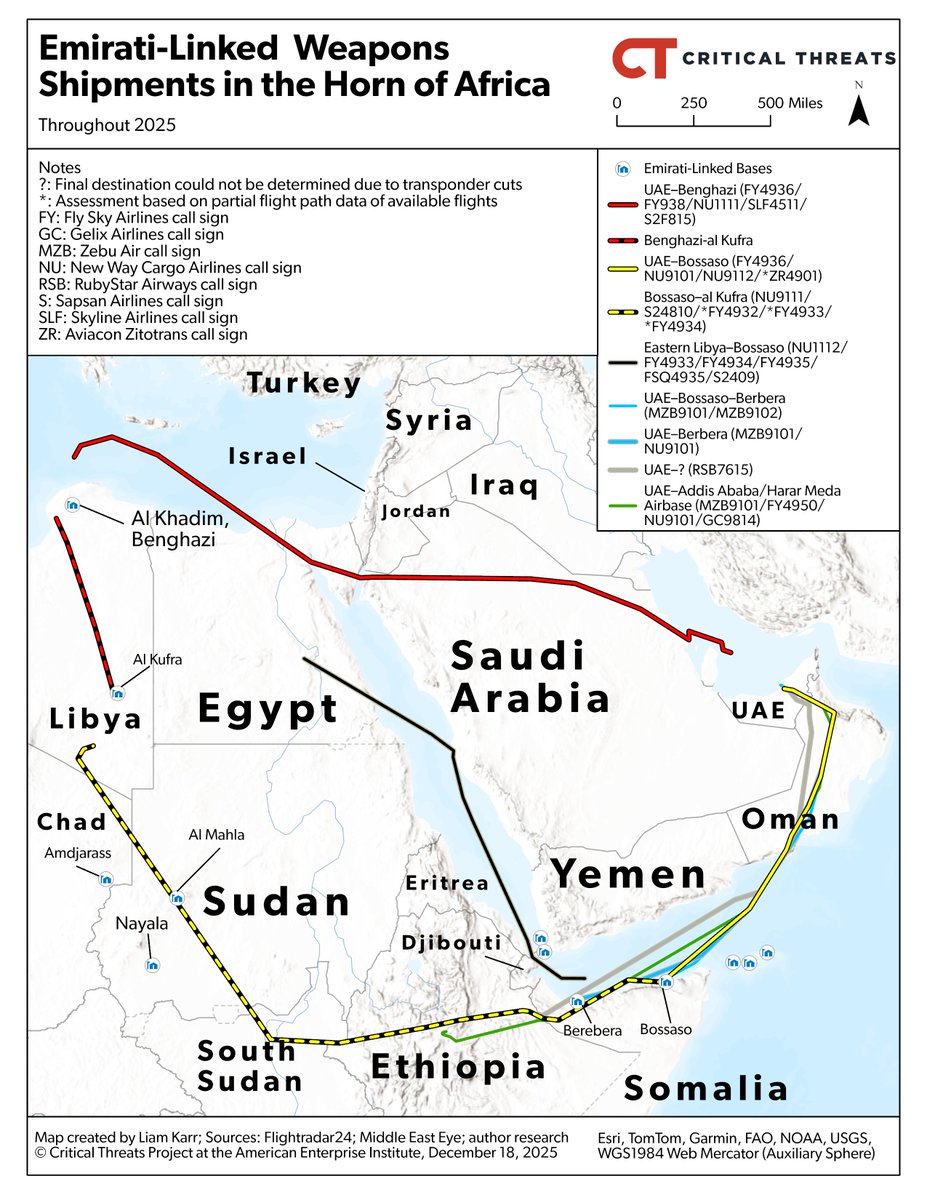 The UAE would lose access to military bases along the Gulf of Aden in Puntland and Somaliland that it uses to support operations against the Iranian-backed Yemeni Houthis and other maritime security operations. The loss of access would hinder the UAE’s ability to supply the RSF, as Puntland’s port of Bossaso is a transit point for UAE weapons shipments to the RSF. 3/6
