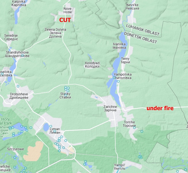 If true, Russia is quickly losing safe road routes to supply the Lyman area, and its occupation of the NE corner of Donetsk oblast is about to collapse. Rybar reported yesterday that UAF capture Nove, cutting another main road route to Lyman from the north.