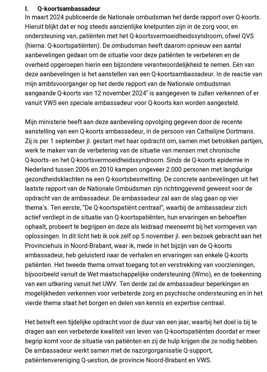 Er komt dus zoals bekend een Q-koorts ambassadeur. Deze krijgt slechts 1 jaar om alle problemen rondom erkenning, voorzieningen en zorg aan te pakken. Het is mij een raadsel wat ze hier nou van verwachten. Als de ambassadeur haar taak ruim op vat, zou het wat op kunnen leveren.