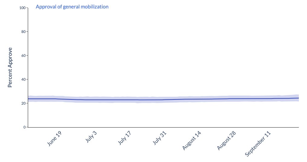 However, the vast majority of Russians are still opposed to general (total) mobilization. We've asked respondents this question regularly since June 6, and support for gen. mob. has remained under 25%. Nor have we seen a substantial increase over the past few days. 3/
