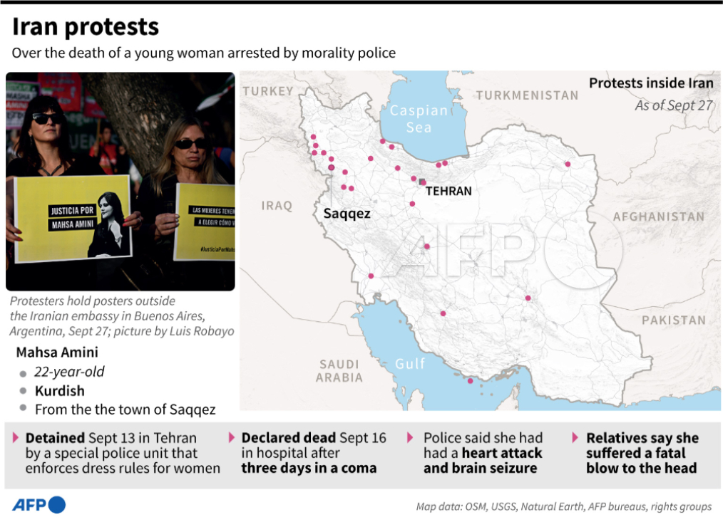 #UPDATE The parents of #MahsaAmini, whose death in the custody of Iran's morality police has sparked 12 nights of protests, have filed a complaint against the officers involved in her detention, the family's lawyer said on Wednesday ▶️ u.afp.com/ioaJ