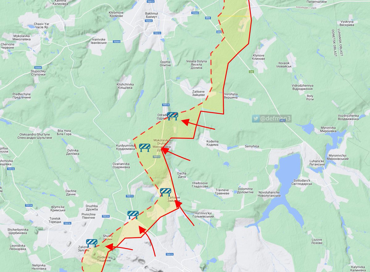 Judging by the report of BARS-13 who is manning the defense of Drobysheve, it seems like Drobysheve is now enveloped and the AFU has fire control over the "Road of life" as they call it, the only road out of town. This map is unconfirmed, source below.