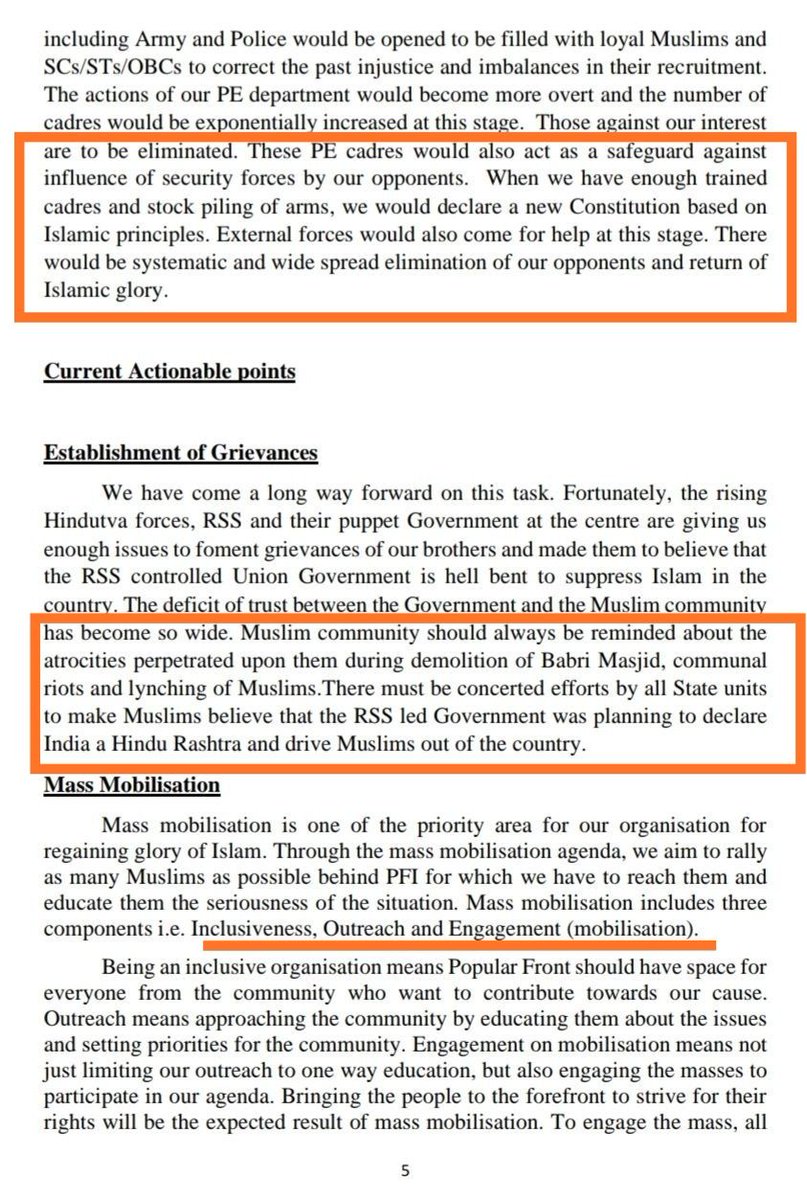 असे काही मुद्दे या डॉक्युमेंट मध्ये आढळून आले. पी.एफ.आय या संघटनेची मूळ उद्दिष्टे या देशामध्ये इस्लामिक राजवट निर्माण करणे आहे हे या आधी वेळोवेळी दिसलेलेच आहे. या लेखात मी केवळ त्यांच्या उद्दिष्ठानची माहिती सांगितली. 16/17