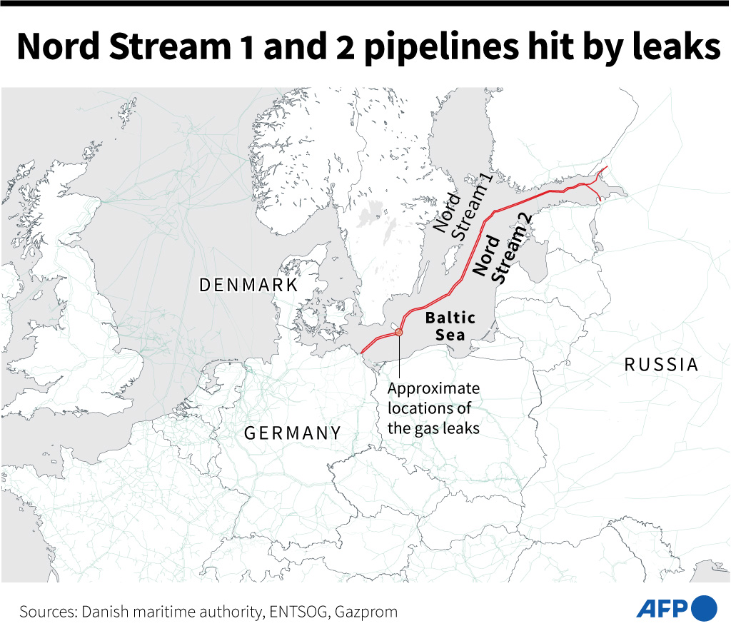 A fourth leak has been detected in undersea gas pipelines linking Russia to Europe, the Swedish Coast Guard said Thursday, after explosions were reported earlier this week in what NATO called "reckless" sabotage. u.afp.com/iojX