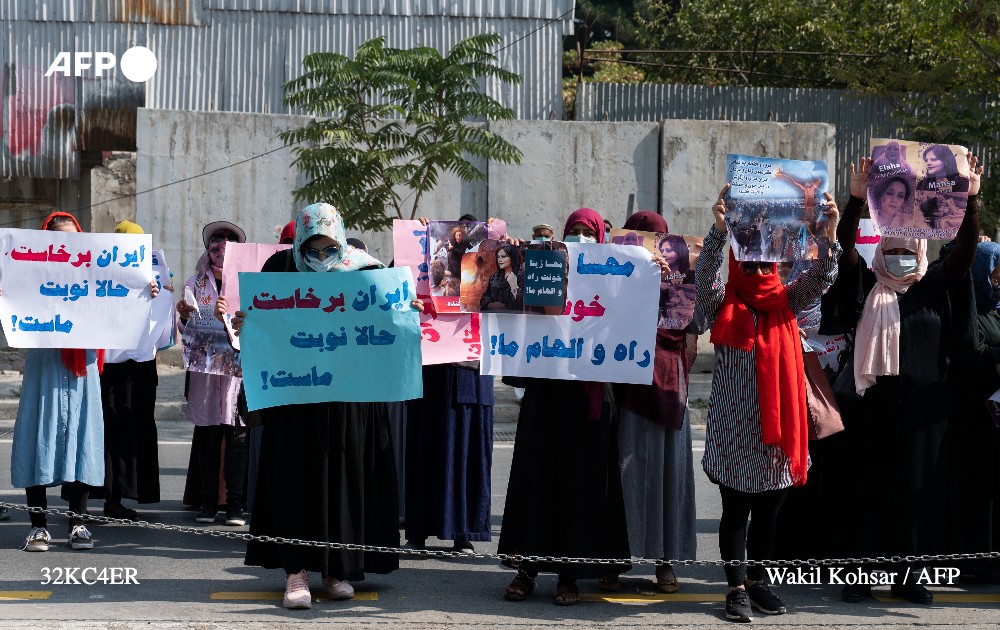 Chanting the "Women, life, freedom!" mantra used in Iran, Afghan women protested outside Iran's embassy in Kabul