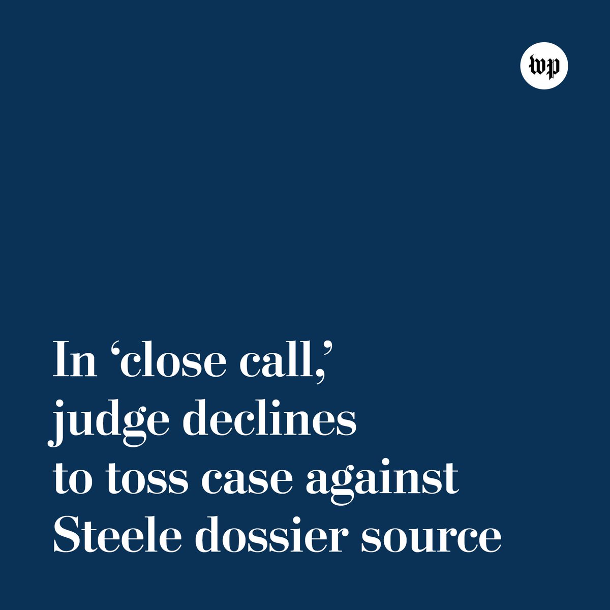 A federal judge rejected a request to dismiss special counsel John Durham’s case against Igor Danchenko — who was a key source for a 2016 dossier of allegations about Donald Trump’s purported ties to Russia, and who was later charged with lying to the FBI. wapo.st/3RpB6Yq