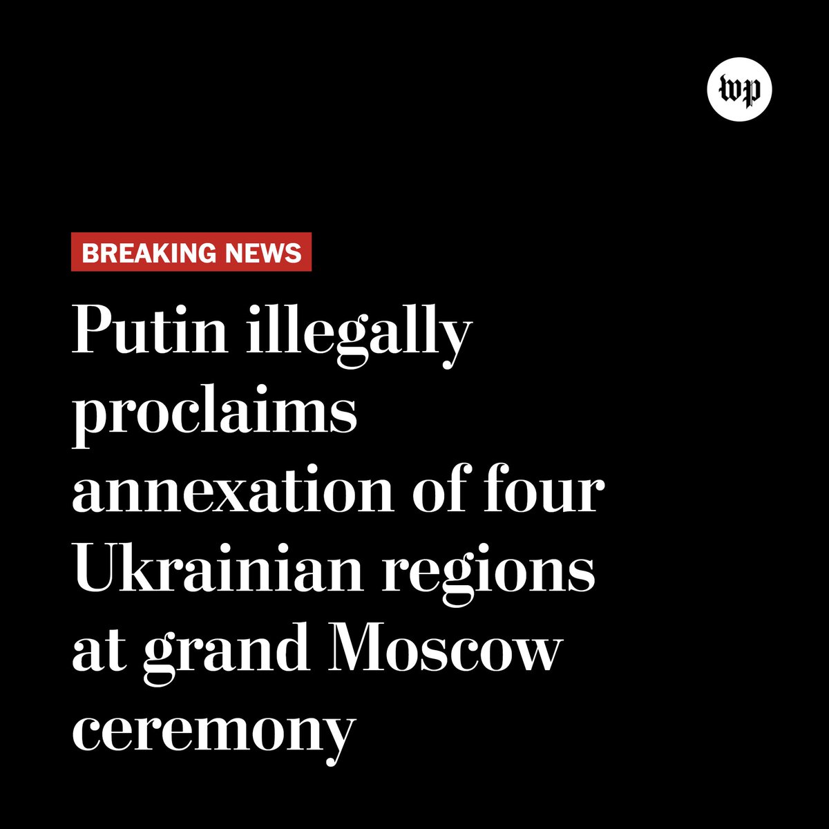 Breaking news: Russian President Vladimir Putin is moving toward illegally annexing four regions in Ukraine, after staging referendums that were widely denounced. wapo.st/3rpdEzG