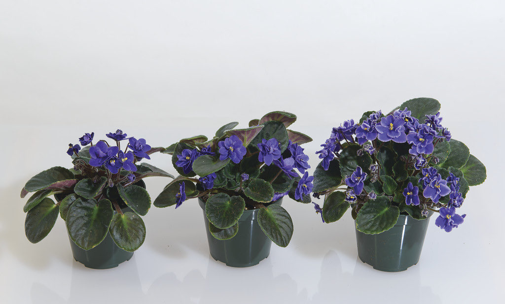 Ici un exemple avec le Saintpaulia , en partant du même matériel on produit ici 3 variants