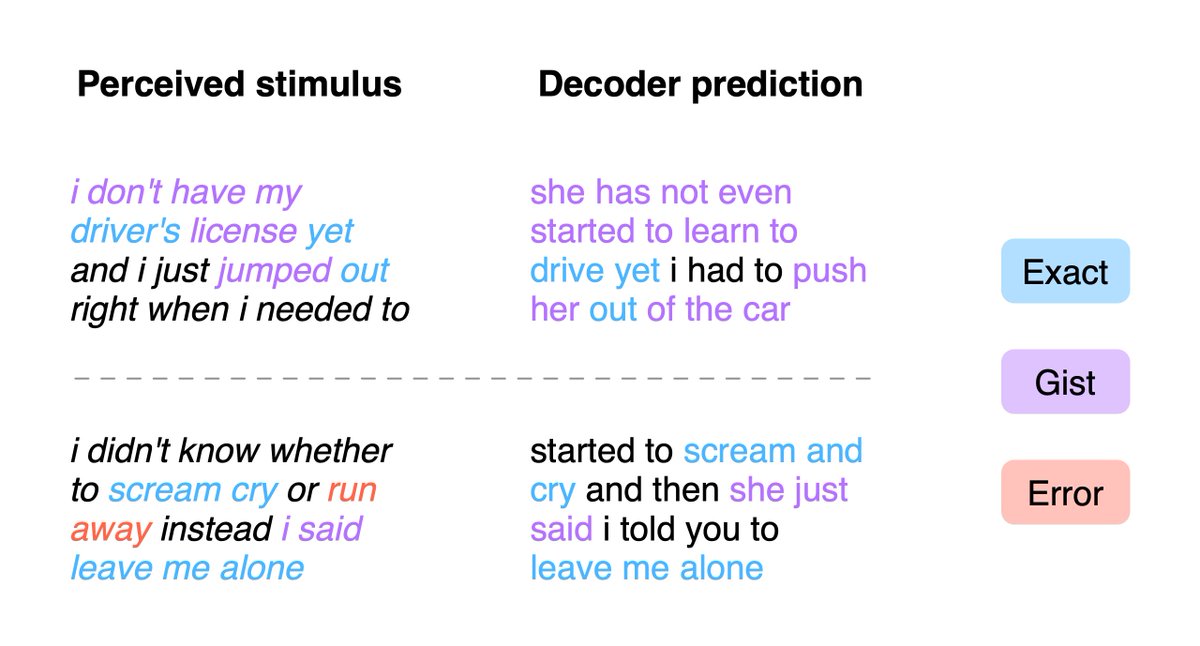 very excited to share our paper on reconstructing language from non-invasive brain recordings! we introduce a decoder that takes in fMRI recordings and generates continuous language descriptions of perceived speech, imagined speech, and possibly much more biorxiv.org/content/10.110…
